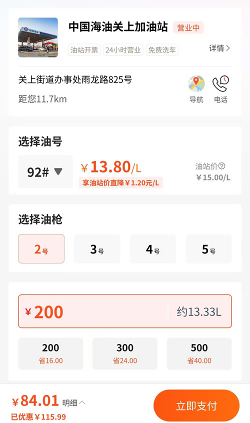油枪、油品、价格绑定、方便选择,预设常用金额,高效输入
